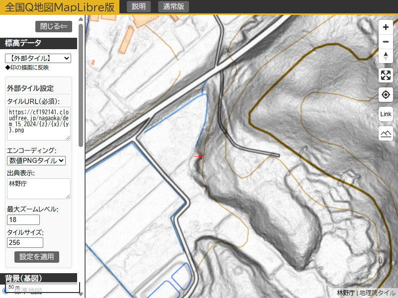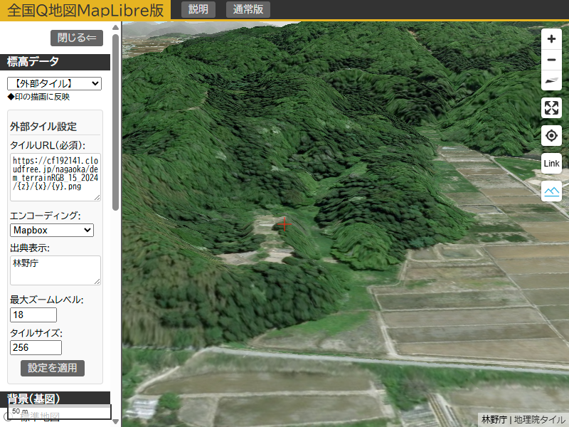 以前、標高タイルの規格の比較 ~なぜ全国Q地図は数値PNGタイルを採用するのか~という記事を書きましたが、ここでは全国Q地図MapLibre版で林野庁から公開されたタイルを表示し、タイルの規格によって実際どのような違いがあるのか比較してみました。