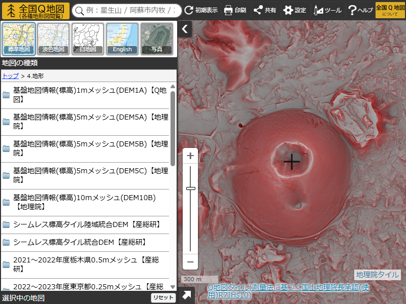 基盤地図情報(標高)1mメッシュ(DEM1A)【Q地図】 赤色立体地図 MPI赤色立体地図 CS立体図 斜度(傾斜量)図